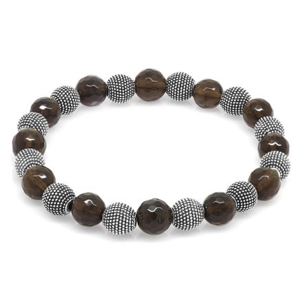 Home Herren Armband Onyx-Metall-Armband aus kombiniertem Naturstein im Kugelschliff