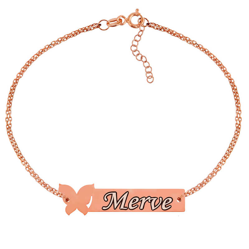 Silberne Rose  Personalisiertes Schmetterlings-Namensarmband für Damen Wie wäre es, wenn Sie die Namen von Ihnen und Ihren Lieben in dieses stilvolle Armband eingravieren würden, das speziell für Sie entworfen wurde? Dieses Design kann getragen werden, ohne dass ein Name darauf steht; Es ist eine hervorragende Option, die zu besonderen Anlässen als Geburtstagsgeschenk, Valentinstagsgeschenk oder Geschenk für Mütter bevorzugt werden kann. Das Namensschild-Damenarmband besteht aus 925er Sterlingsilber. Es ist auf Silber roséplattiert. Damenarmbandmodelle aus rosévergoldetem Silber behalten lange ihren Glanz und ihre Oxidation wird verzögert. Wie alle silbernen Damenarmband-Modelle wird auch dieses silberne Damenarmband mit Namensschild in reiner Handarbeit gefertigt. Aufgrund von Silber und Edelsteinen kann es zu einer Abweichung von ± 10 % im angegebenen durchschnittlichen Produktgewicht kommen. Hinweis: Für personalisierte Produkte ist kein Umtausch oder Rückgabe möglich. Das Produkt wird in einer Geschenkbox versendet… Alle unsere Produkte sind handgefertigt. Aufgrund von Silber und Edelsteinen kann es zu einer Abweichung von ± 10 % des Produktgewichts kommen. Breite: 3,50 cm Höhe: 1,00 cm Gewicht: 2,50 gr.