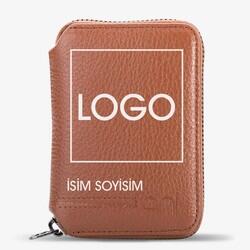 Personalisiertes Kartenetui aus echtem Leder mit Reißverschluss, Braun