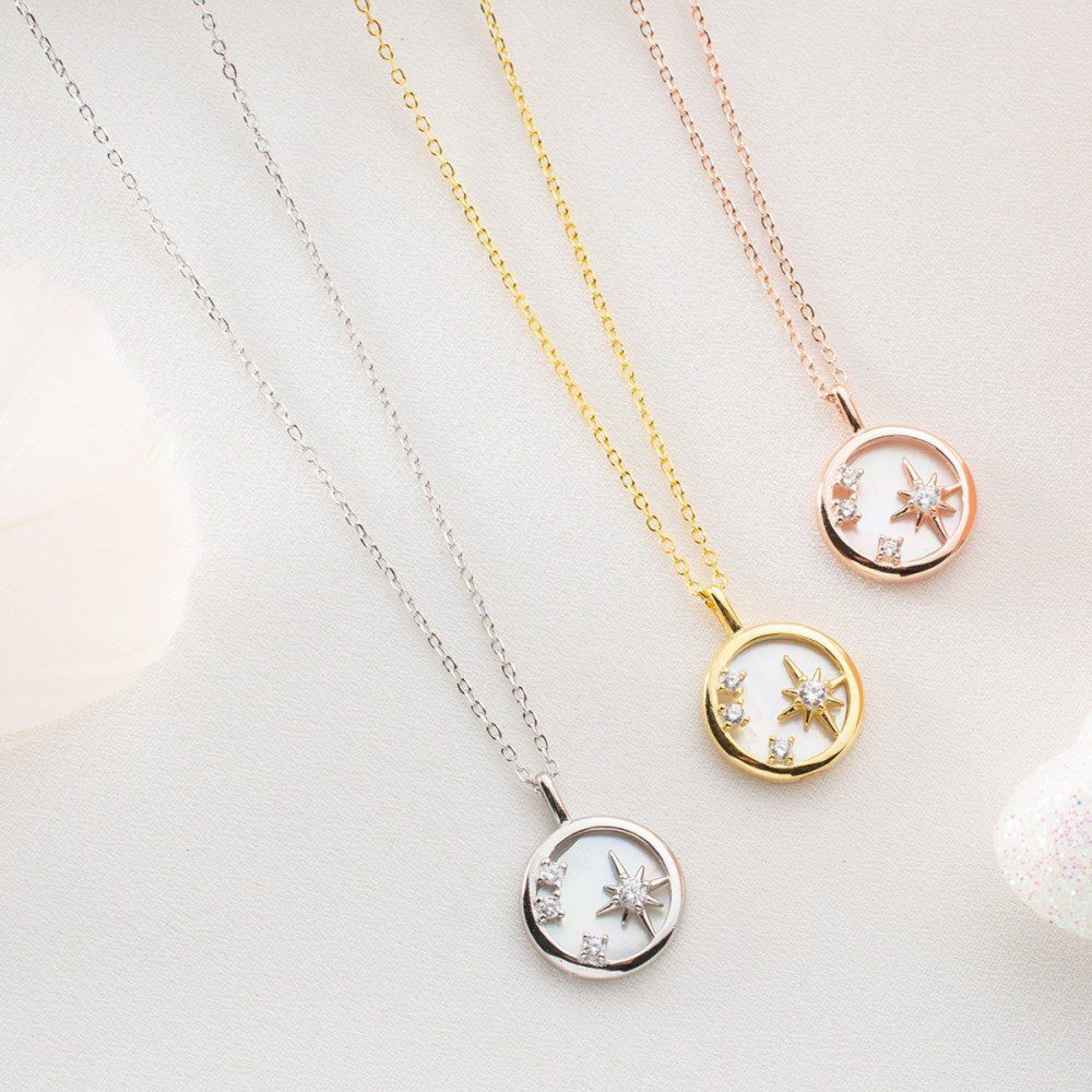 Polarstern halskette aus echtem 925er Sterlings Silber-, Gold- und Roséfarben.