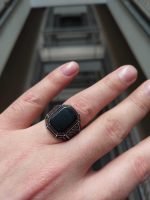 Günstiger Herrenring aus 925er-Sterlingsilber mit quadratischem schwarzen Onyxstein. Produktmerkmale: Hergestellt aus 925er-Sterlingsilber. Es wiegt etwa 7,2 Gramm. Es wurde schwarzer Onyxstein verwendet. Die Unterseite des Rings ist offen. An den Seiten des Rings befinden sich symmetrische Motive. Es handelt sich um einen kleinen Modellring. Ihre Ringgröße können Sie kostenlos beim Juwelier erfahren. Es ist bekannt, dass die Nacht viele Werke inspiriert. Viele große Künstler in verschiedenen Sparten, von der Literatur bis zur Malerei, von der Musik bis zu verschiedenen Kunsthandwerken, arbeiteten lieber nachts und argumentierten, dass sie aufgrund der Hektik des Tages ihre Identität in ihren Werken nicht so widerspiegeln könnten, wie sie sollten. Van Goghs Sternennacht und Henochs Buch Henoch haben als beste Beispiele, die die Möglichkeiten von Schwarz und Nacht widerspiegeln, ihren Platz in der Kunstgeschichte eingenommen. Wie können Sie also Ihre Liebe zur Nacht und zur Schwarzheit zum Ausdruck bringen? Die Antwort ist einfach. Dieser Ring mit einem symmetrisch gravierten Silberkörper und einem nachtschwarzen Onyxstein ist das ideale Produkt zur Perfektionierung Ihrer dunklen Farbkombinationen. Bestellen Sie jetzt und lassen Sie die Brise der Nacht an Ihre Tür kommen und mit der Sicherheit und Qualität von Anı Ring ihren Platz an Ihrem Finger finden! Vorteile des Onyxsteins: Es ist ein Stein, der wirksam Selbstvertrauen, Glück, Depressionen und Stress reduziert. Er ist ein wirksamer Stein gegen den bösen Blick und schützt den Menschen vor negativen Energien. Er hat eine beruhigende und entspannende Wirkung. Es wird angenommen, dass es Glück und Mut bringt. Es sorgt für Ausgeglichenheit bei Menschen, die Schwierigkeiten haben, sich zu konzentrieren.