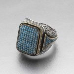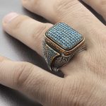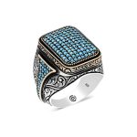 Quadratischer Herrenring aus silbernem türkisfarbenem Zirkonstein. Dieses Herrenringmodell, bestehend aus einem silbernen türkisfarbenen Zirkonstein, ist ein stilvolles Accessoire, das Sie zu jeder Tageszeit tragen können. Dieser Ring; Sie können es sich selbst oder Ihren Lieben zum Geburtstag, Vatertag oder zu besonderen Anlässen schenken. Das Herrenringmodell mit türkisfarbenem Stein besteht aus 925er Sterlingsilber. Auf Silber erfolgt eine Oxidbeschichtung. Silberne Herrenringmodelle mit Oxidbeschichtung behalten lange ihren Glanz. Wie alle Herrenringe wird auch das Herrenringmodell mit silbernem Zirkon und türkisfarbenem Stein in Handarbeit hergestellt. Aufgrund von Silber und Edelsteinen kann es zu einer Abweichung von ± 10 % beim angegebenen durchschnittlichen Produktgewicht kommen. Breite: 2,30 cm Länge: 2,80 cm Durchschn. Gewicht: 18g.