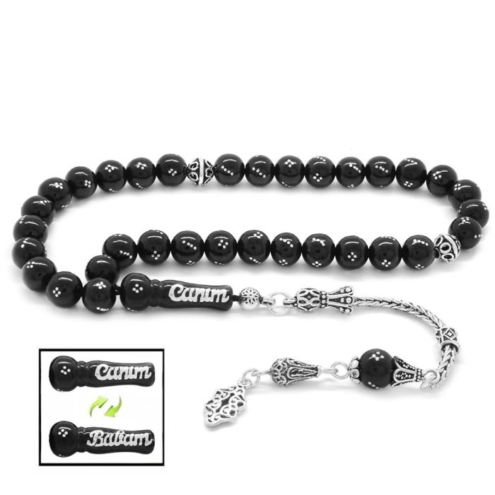 Produktionsmaterial: Russische Oltu-Quaste Hauptfarbe: Schwarz Gewicht: 20,84 g ± Kornform: Kugelschliff Korngröße: 8 mm x 8 mm Gesamtlänge: 29,00 cm Fantasiematerial: Russisches Oltu-Quastenmaterial: 925er Sterlingsilber Produktbox Ihr Produkt Es ist Wird mit einer Schutzbox mit Logo verschickt. Spezielle Optionen für Geschenkboxen finden Sie in der Kategorie „Geschenkbox“ im Menü. Produkt- oder Natursteinbeschreibung Oltu-Stein ist ein Halbedelstein, der im Allgemeinen im Oltu-Bezirk von Erzurum abgebaut wird. Darüber hinaus zeichnet sich der in Georgien abgebaute Oltu-Stein durch eine einfache Verarbeitung aus. Aus diesem Grund wird es in verschiedenen Schmuckstücken und Accessoires verwendet. Gebetsperlen sind eines dieser Accessoires. Der Ruhm der Gebetsperlen aus Oltu-Stein ist nicht nur in der Türkei, sondern auf der ganzen Welt weit verbreitet. Es ist bekannt, dass der Oltu-Stein, von dem angenommen wird, dass er bei Menschen, die Rosenkränze verwenden, Elektrizität aus dem Körper entzieht, auch Stress reduziert.