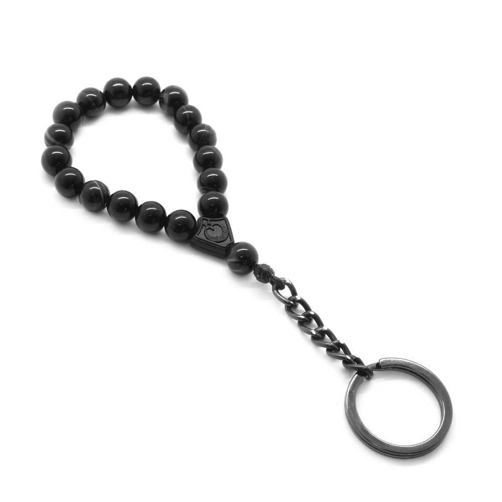 Onyx-Naturstein-Stahl-Kombinations-Rosenkranz-Schlüsselanhänger