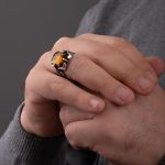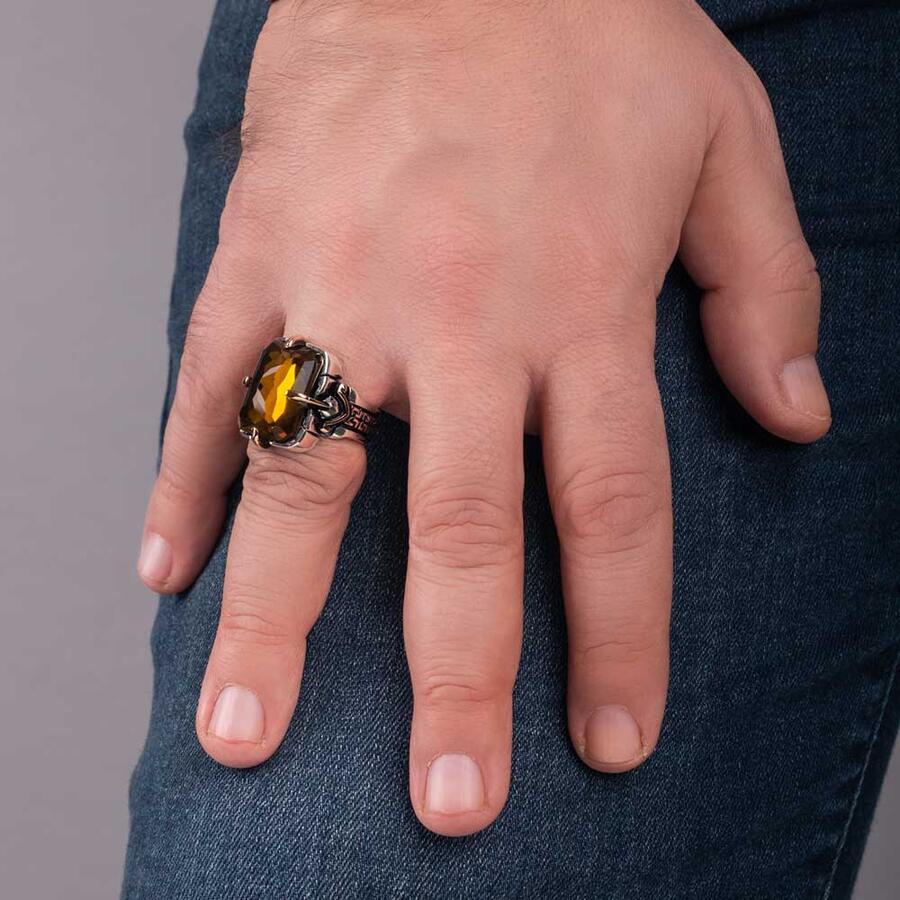 Shield Design Herrenring aus Silber mit Bernsteinstein und Facettenschliff. Produktmerkmale: Er ist aus 925er Sterlingsilber gefertigt. Auf dem Ring befindet sich ein Bernsteinstein. Das Gewicht beträgt ca.: 18 ± gr. Sie kann je nach Ringgröße variieren. Der Ring ist voll. Ihre Ringgröße können Sie kostenlos beim Juwelier erfragen.