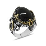 Herrenring aus 925er-Sterlingsilber mit schwarzem Onyxstein und Kettendesign