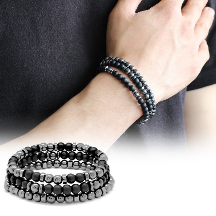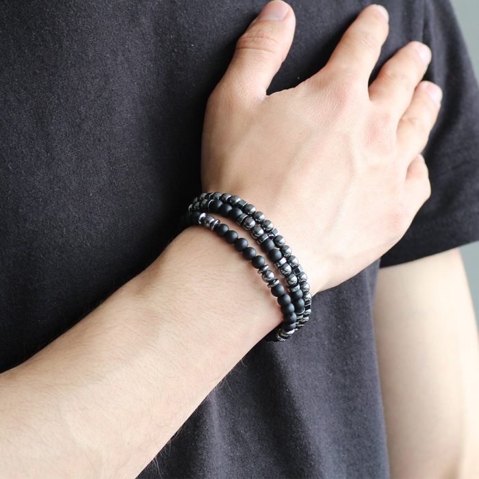 Home ARMBAND Herrenarmbänder Herrenarmbänder aus Naturstein Schwarzes Onyx-Hämatit-Kombinations-Natursteinarmband im Kugelschliff