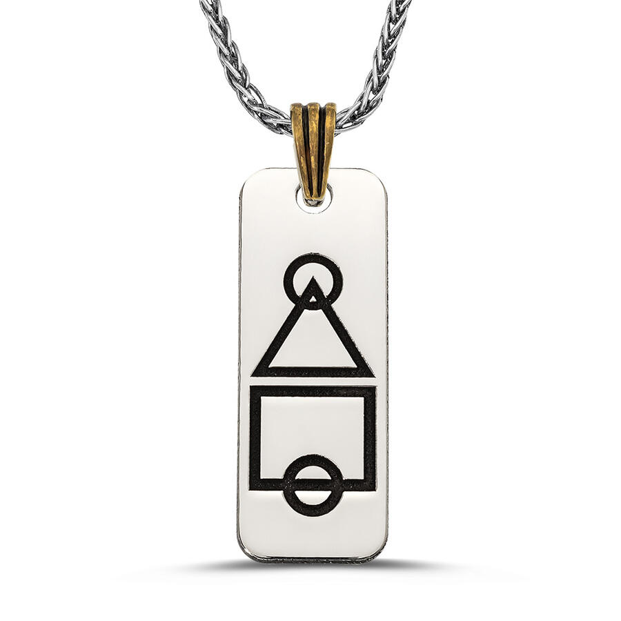 Silber-Schwarze Squid Game Herren-Halskette mit Kette, Modell 1, Produktmerkmale: Hergestellt aus 925er Sterlingsilber. Der Versand erfolgt mit einer 50 cm langen Silberkette.