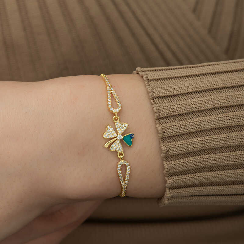 Silbergoldenes Evil Eye Kleeblatt-Armband