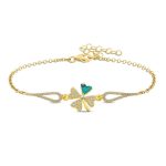 ​Silbergoldenes Kleeblatt-Armband mit bösem Blick. Das vierblättrige Kleeblatt gilt in allen Kulturen als Symbol für Glück. Jedes der vier Blätter des Klees hat eine andere Bedeutung. Das erste Blatt symbolisiert Hoffnung, das zweite symbolisiert Glauben, das dritte symbolisiert Liebe und das vierte Blatt symbolisiert Glück. Das speziell entworfene Damenarmband-Modell, das aus der Kombination von vier Herzen besteht, ist aus 925er Sterlingsilber gefertigt. Dieses elegante Armband ist eine sehr stilvolle Option, die junge Verliebte zu besonderen Anlässen wählen können. Das silberne Damenarmband mit bösem Blick und Kleeblatt ist vergoldet. Vergoldete Damenarmbänder aus Silber behalten lange ihren Glanz, verleihen dem Silber eine gelbe Farbe und verzögern die Oxidation. Das Damenarmband mit bösem Blick und Kleeblatt aus Silber und Gold ist eines der besten Geschenke, an dem Ihre Lieben genauso viel Freude haben werden wie Sie. Wie alle unsere silbernen Damenarmbandmodelle wird auch das silberne und goldene Kleeblatt-Armband mit bösem Blick in Handarbeit hergestellt. Aufgrund von Silber und Edelsteinen kann es zu einer Abweichung von ± 10 % im angegebenen Produktgewicht kommen. Breite: 1,30 cm Länge: 6,30 cm Durchschn. Gewicht: 3,65 g. Armbandlänge: 20,00 cm