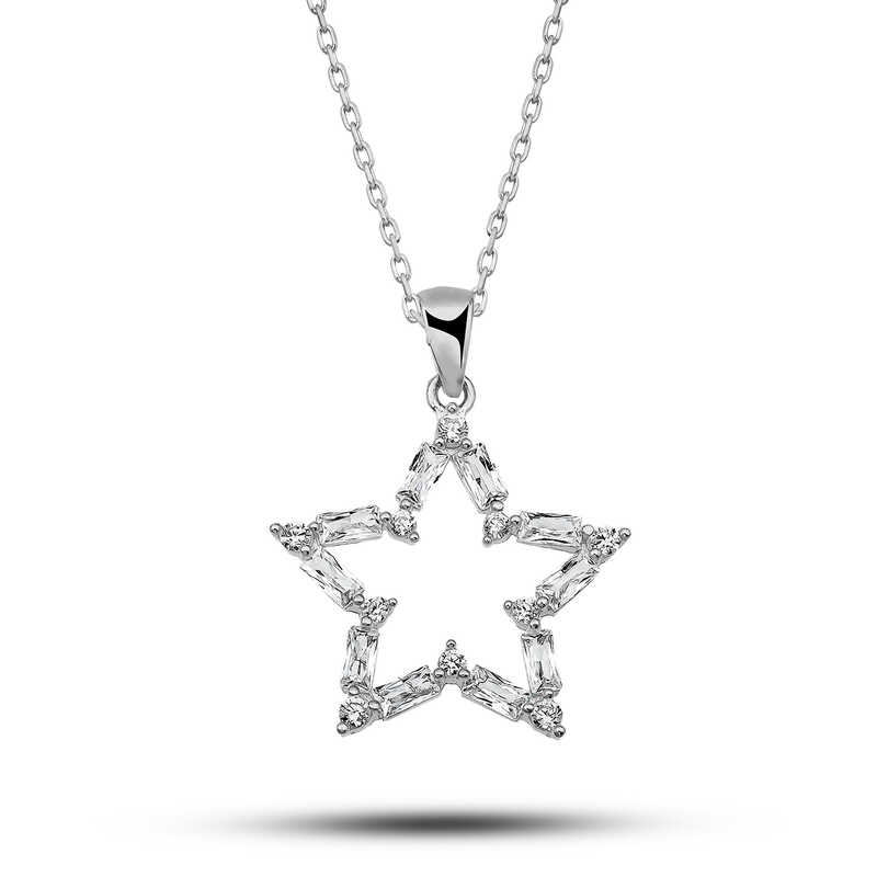Home Halsketten für Damen Silberne Baguette-Stein-Stern-Damenhalskette