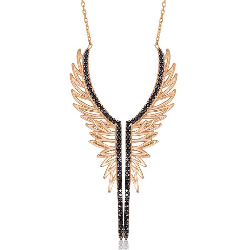 Silberne Engelsflügel-Damenhalskette. Engel sind Symbole für Reinheit und Sauberkeit. Aus diesem Grund wird der Person, der die Engelskette geschenkt wird, die Botschaft vermittelt, dass sie so rein und rein wie ein Engel ist… Dieses besondere Engelsflügel-Design ist aus 925er Sterlingsilber gefertigt… Die Steine ​​auf dem Die Design-Engelsflügel-Damenhalskette besteht aus Zirkon. Diese Damen-Silberhalskette besteht aus einer Rosévergoldung. Alle rosévergoldeten Halsketten behalten lange ihren Glanz, verleihen dem Silber eine rosa Farbe und verzögern die Oxidation. Die durchschnittliche Kettenlänge beträgt 45 cm. Wie alle Silberketten wird auch diese silberne Damenkette mit Engelsflügel in Handarbeit gefertigt. Aufgrund von Silber und Edelsteinen kann es zu einer Abweichung von ± 10 % des Produktgewichts kommen. Breite: 2,40 cmLänge: 5,50 cmDurchschn. Gewicht: 5,50 gr.