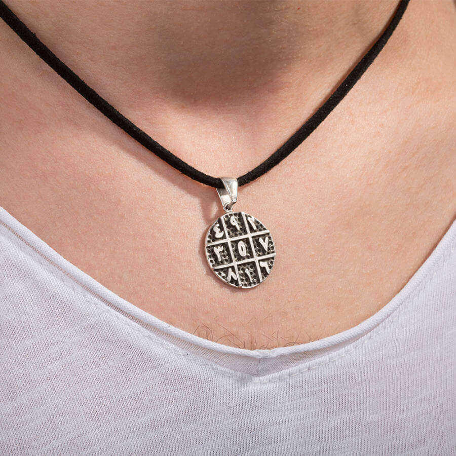 Silberne Herrenhalskette mit Abjad-Berechnungsmuster