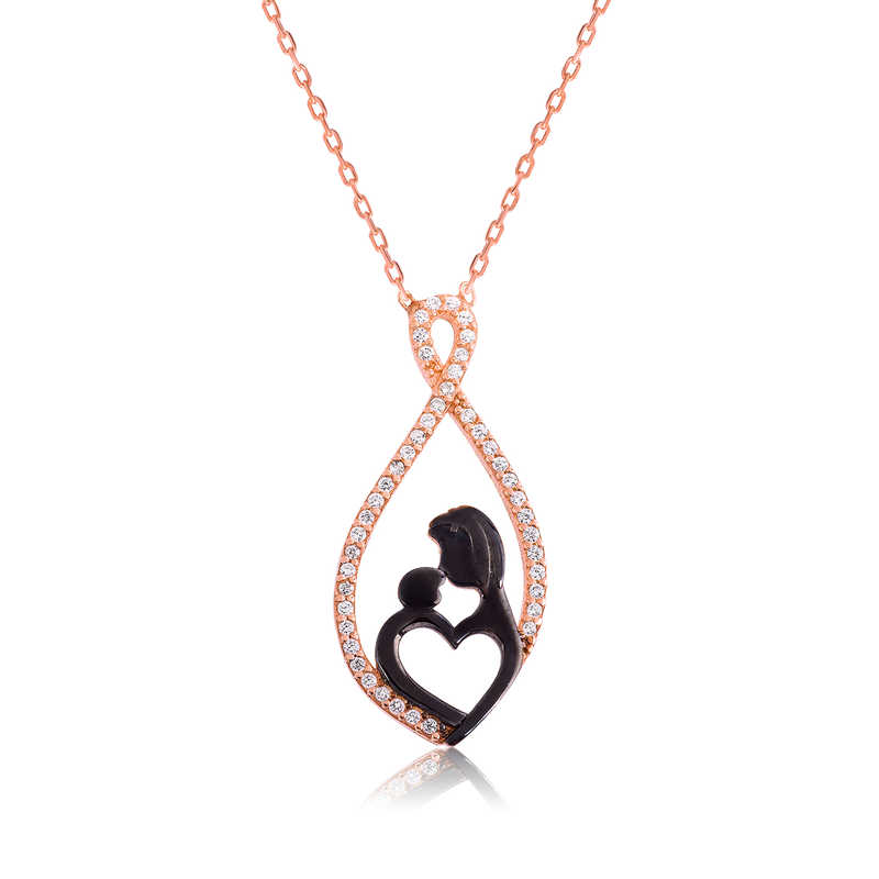 Die silberne Herz-Mutter-Kind-Halskette ist ein besonderes Design, das die Liebe zwischen Kind und Mutter darstellt. Eines der passendsten Geschenke, die Sie kaufen können, um Ihre Hingabe an Ihre Mutter auszudrücken, ist diese Mutter-Kind-Liebeskette. Diese speziell für Ihre Mutter entworfene Herz-Mutter-Kind-Halskette besteht aus 925er Sterlingsilber. Rose auf Silber plattiert. Rosé vergoldete Mutter-Kind-Halskettenmodelle aus Silber behalten lange ihren Glanz und ihre Oxidation wird verzögert. Die Steine ​​an der Halskette sind aus Zirkon. Die durchschnittliche Länge der Silberkette beträgt 45 cm. Die silberne Herz-Mutter-Kind-Halskette ist handgefertigt. Aufgrund von Silber und Edelsteinen kann es zu einer Abweichung von ± 10 % im angegebenen Produktgewicht kommen.