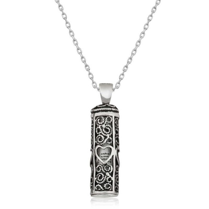 Home Halskette Halsketten für Damen Halsketten mit religiösen Motiven Cevşen-Gebetsketten Silberne herzgemusterte Cevşen-ül-Kebir-Halskette