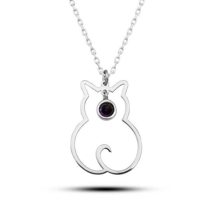 Silberne Februar-Geburtsstein-Katze-Frau-Halskette. Jeder Geburtsstein ist mit einem bestimmten Monat gekennzeichnet. Amethyst ist der Geburtsstein des Februars. Es ist bekannt, dass Menschen diesen Stein schon vor 25.000 Jahren zu dekorativen Zwecken verwendeten. Dies zeigt, dass Amethyst seit der Jungsteinzeit von Menschen verwendet wird. Der Stein steht für Frieden, Glück und Liebe. Es wird auch angenommen, dass es die Ausdruckskraft durch Sprechen und Schreiben steigert. Katzen, die niedliche Quelle der Freude in unserem Zuhause, sind Symbole für Unschuld und Sauberkeit. Sie haben eine edle und logische Persönlichkeit, ausgezeichnete Intuition und rationales Feingefühl. Silberschmuck, eine der beliebtesten Geschenkideen zu besonderen Anlässen, richtet sich an alle, die ihren Lieben eine Freude machen und ihnen ein Geschenk machen möchten, das sie immer bei sich tragen können. Sie können das silberne Halskettenmodell mit einer Katzenfigur, die das Symbol der Unschuld darstellt, Ihrer Schwester, Ihrem Liebhaber oder Ihren Freunden schenken. Das Halskettenmodell „Katzenfrau mit Amethyststein“ ist aus 925er Sterlingsilber gefertigt. Es ist auf Silber rhodiniert. Katzenhalskettenmodelle aus rhodiniertem Silber behalten lange ihren Glanz und ihre Oxidation wird verzögert. Alle Steine an der Halskette sind Amethyst. Die durchschnittliche Länge der Silberkette beträgt 45 cm. Die silberne Katzenhalskette für Damen wird wie alle anderen silbernen Damenhalskettenmodelle von Hand gefertigt. Aufgrund von Silber und Edelsteinen kann es zu einer Abweichung von ± 10 % im angegebenen durchschnittlichen Produktgewicht kommen. Breite: 1,60 cm Höhe: 2,30 cm Kettenlänge: 45 cm Durchschnittliches Gewicht: 2 gr.