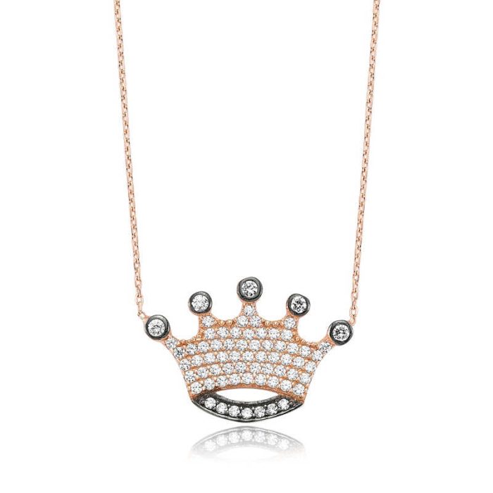 Damen-Halskette „Queen Crown“ aus Silber. Es ist ein geeignetes Modell, um Ihren Lieben die Botschaft zu übermitteln, dass sie Ihre Krone sind. Diese Damenhalskette mit Königinkrone, die problemlos im täglichen Leben verwendet werden kann, besteht aus 925er Sterlingsilber. Rosévergoldet auf Silber. Damenhalskettenmodelle aus rosévergoldetem Silber behalten lange ihren Glanz und ihre Oxidation wird verzögert. Die Steine an der Halskette sind aus Zirkon. Die durchschnittliche Länge der Silberkette beträgt 45 cm. Diese Damenhalskette mit silberner Königinkrone ist handgefertigt. Aufgrund von Silber und Edelsteinen kann es zu einer Abweichung von ± 10 % im angegebenen Produktgewicht kommen.
