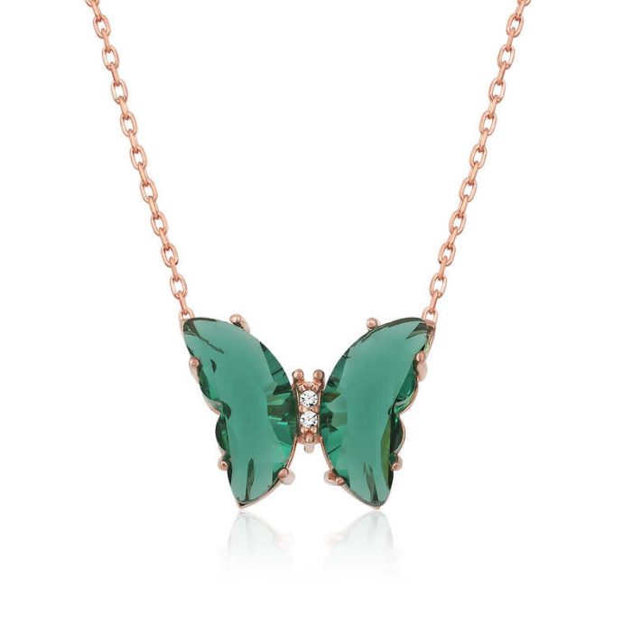 Home DAMEN Halsketten für Damen Silberne Rose-grüne Glas-Schmetterlings-Halskette