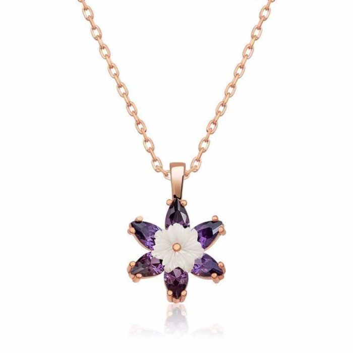 Home Halsketten für Damen Silberne Rose Lila Lotusblüten Halskette