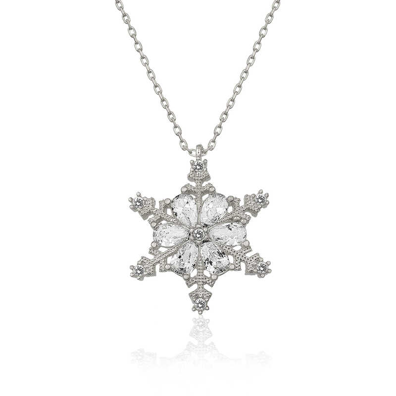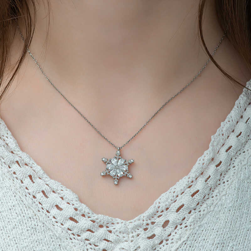 Silberne Schneeblumen-Damenhalskette. Der Glanz und die Klarheit von Frauen werden mit einer Schneeflocke verglichen. Die Schneeblume symbolisiert auch die Person, die Sie lieben. Ein weiteres besonderes Merkmal ist, dass jede Schneeflocke einzigartig und wertvoll ist, genau wie Frauen. Der Adel der Schneeflocke hat zu jeder Zeit Aufmerksamkeit erregt. Darüber hinaus symbolisiert es, genau wie Schneeflocken, dass Menschen glücklich leben können, ohne sich gegenseitig zu schaden. Diese stilvolle und bedeutungsvolle Halskette; Es ist eine hervorragende Option, die zu besonderen Anlässen als Geburtstagsgeschenk, Valentinstagsgeschenk oder Geschenk für Mütter bevorzugt werden kann. Die Halskette besteht aus 925er Sterlingsilber. Es ist auf Silber rhodiniert. Rhodinierte Produkte behalten lange ihren Glanz und die Oxidation des Produkts wird verzögert. Wie alle silbernen Damenketten wird auch diese silberne Schneeblumen-Damenkette vollständig von Hand gefertigt. Aufgrund von Silber und Edelsteinen kann es zu einer Abweichung von ± 10 % im angegebenen durchschnittlichen Produktgewicht kommen. Breite: 1,80 cm Höhe: 2,00 cm Durchschnittlich. Gewicht: 2,85 g. Kettenlänge: 45,00 cm