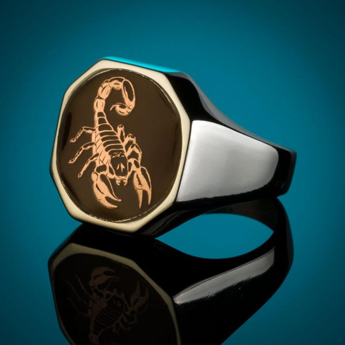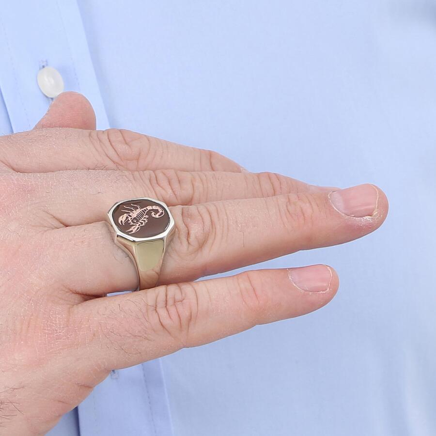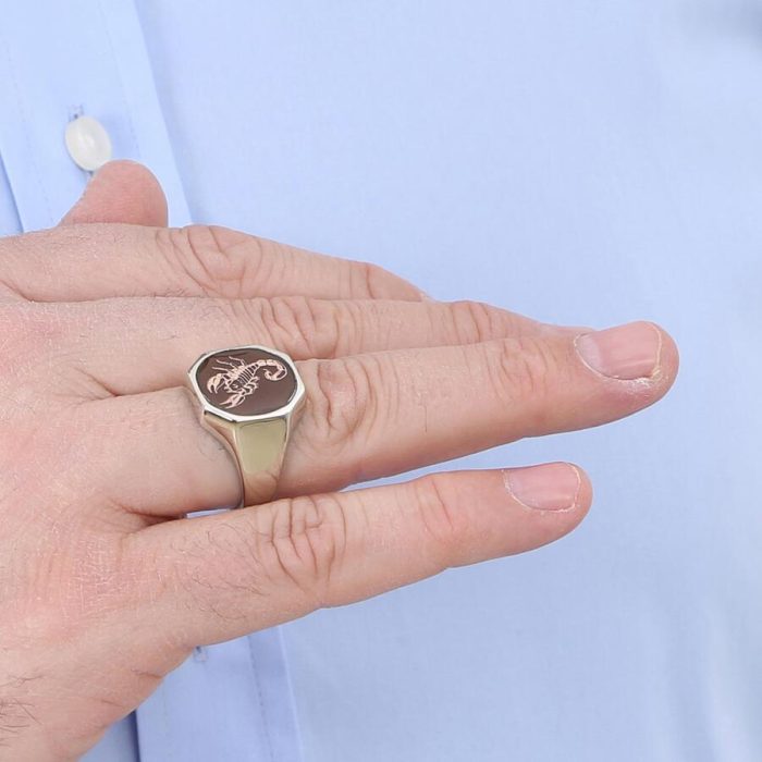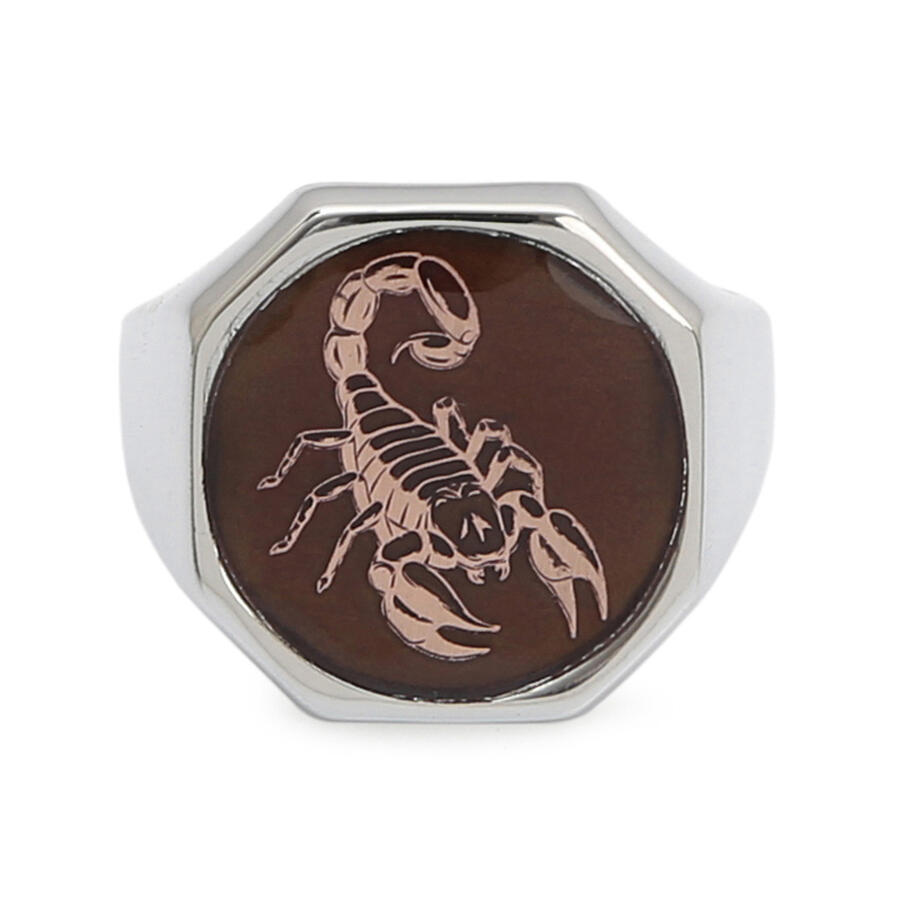 Silberner Herren-Sternzeichen-Ring Skorpion, Silber-Bronze-Farbe, Seiten, schlichtes Modell, transparente Emaille. Produktmerkmale: Hergestellt aus 925er Sterlingsilber. Das ungefähre Gewicht beträgt etwa 10 Gramm. Sie kann je nach Ringgröße variieren. Sie können die Lebensdauer Ihres Silberrings verlängern, indem Sie auf Seife, Deodorant, Schweiß und Wasser verzichten. Ihre Ringgröße können Sie kostenlos beim Juwelier erfahren.