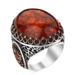 Großer Herren-Silberring mit osmanischem Wappen und synthetischem Stein. Produktmerkmale: Hergestellt aus 925er Sterlingsilber. Es wiegt etwa 22,5 Gramm. Sie kann je nach Ringgröße variieren. Die Unterseite des Rings ist geschlossen (der Teil, an dem der Stein die Haut berührt). Auf dem Ring befindet sich ein synthetischer Stein. An den Seiten des Rings befindet sich eine Figur des osmanischen Wappens. Die Abmessungen der Oberseite betragen von links nach rechts etwa 2 cm; Ca. 2,9 cm von oben nach unten. Ihre Ringgröße können Sie kostenlos beim Juwelier erfahren.
