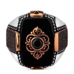 Mini-Stein-gestickter schwarzer Onyx-Stein-Silber-Herrenring Produktmerkmale: Hergestellt aus 925er Sterlingsilber. Gewicht ca.: 14-15gr. Es kann je nach Ringgröße variieren. Sie können die Lebensdauer Ihres Silberrings verlängern, indem Sie auf Seife, Deodorant, Schweiß und Wasser verzichten. Ihre Ringgröße können Sie kostenlos beim Juwelier erfahren.