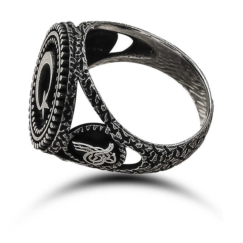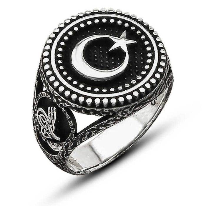 Silberner Halbmond- und Stern-Herrenring Halbmond und Stern oder Halbmond-Stern; Ein altes Symbol, bestehend aus einem Halbmond und einem Stern am offenen Ende des Halbmonds. Flaggen mit diesem Symbol sind vor allem im Mittelmeerraum, im Nahen Osten und in Zentralasien zu finden. Heute ist es als Symbol bekannt, das hauptsächlich in den Flaggen islamischer Länder verwendet wird. Das Halbmond-Stern-Symbol findet sich auf vielen Flaggen, darunter auch auf der türkischen Flagge. Obwohl der Mond oder die Sichel mit der islamischen Religion identifiziert wird, wurde er auch in vorislamischen Zeiten verwendet. Mond-Stern- und Sonnenmotive geben Aufschluss über die Universumsgestaltung asiatischer türkisch-mongolischer Völker. Die ersten Dokumente, die den Mond und den Stern zusammen zeigten, erschienen jedoch in sumerischen Städten in Mesopotamien, dem heutigen Südirak. In der Geschichte waren die Sumerer die ersten, die das Halbmond-Stern-Motiv verwendeten, das eindeutig aus einem Halbmond besteht. Sumerer, BC. Sie gründeten 3000 v. Chr. den ersten Staat der Geschichte im Südirak und unternahmen große Schritte beim Aufbau der heutigen Zivilisation. Die sumerische Sprache war dem Türkischen sehr ähnlich. Ihr Glaube ähnelte weitgehend dem der Türken. Die Symbole des sumerischen Mondgottes „Nana-Suen“ und des Sonnengottes „Utu“ oder der Göttin Inana wurden zusammen dargestellt und bildeten das erste Halbmond-Stern-Duo. Dieses Motiv wurde teils auf Steinreliefs, teils auf Siegeln und teils auf Tontafeln verarbeitet und hat sich bis heute erhalten. Dieser stilvolle Ring; Sie können es als Geburtstagsgeschenk oder Valentinstagsgeschenk zu besonderen Anlässen wählen. Der silberne Halbmond- und Stern-Herrenring besteht aus 925er Sterlingsilber. Auf Silber erfolgt eine Oxidbeschichtung. Oxidierte Silberringe wirken gealtert. Aufgrund von Silber und Edelsteinen kann es zu einer Abweichung von ± 10 % im angegebenen durchschnittlichen Produktgewicht kommen. Breite: 2,30 cm Länge: 2,60 cm Durchschn. Gewicht: 7,90 gr.