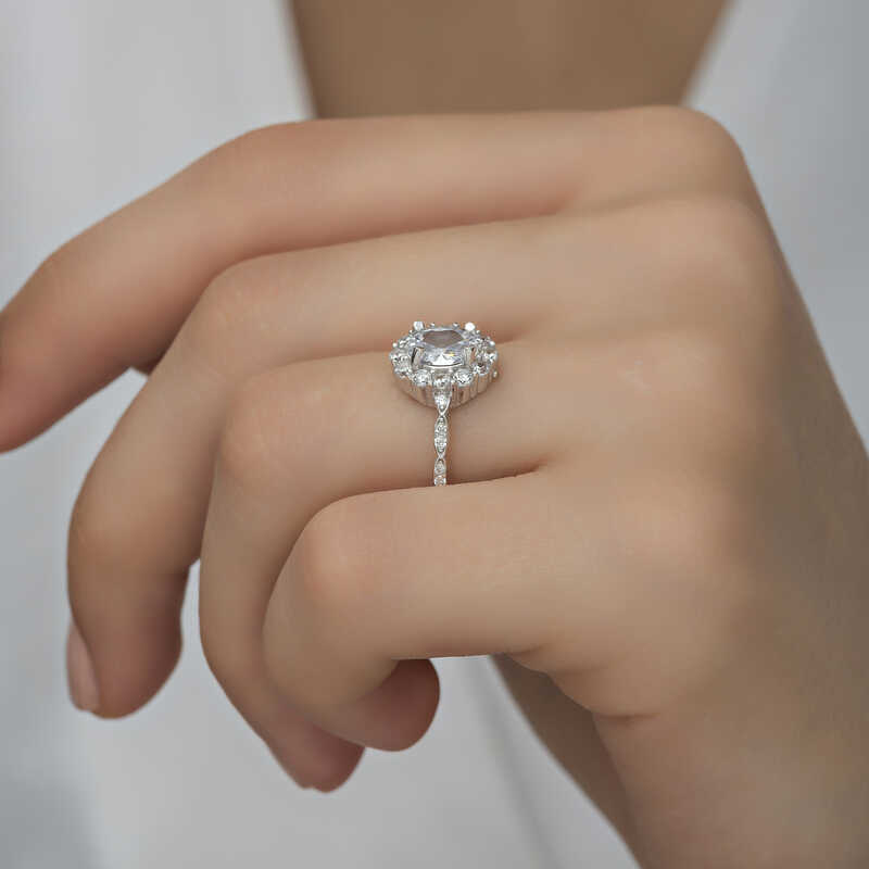 Damenring mit ovalem Stein in Silber und Weiß Wie wäre es, wenn Sie Ihrer Liebsten eine angenehme Überraschung mit einem Damenring mit ovalem Stein in Silber und Weiß machen würden, der die Liebe symbolisiert? Bringen Sie Ihre Eleganz noch einen Schritt weiter mit einem Silberring, der mit Zirkonsteinen verziert ist. Es besteht aus 925er Sterlingsilber. Es ist auf Silber rhodiniert. Rhodinierte Produkte behalten lange ihren Glanz und die Oxidation wird verzögert. Die Steine darauf sind aus Zirkon. Alle unsere Produkte werden in Handarbeit hergestellt. Aufgrund von Silber und Edelsteinen kann es zu einer Abweichung des Produktgewichts von ± 5 % kommen. Ringbreite: 2,20 cm Ringlänge: 2,70 cm Durchschnittsgewicht: 3,50 g