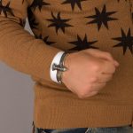 Wicker Design Kuka besticktes Herrenarmband aus brauner Stahl-Leder-Kombination