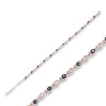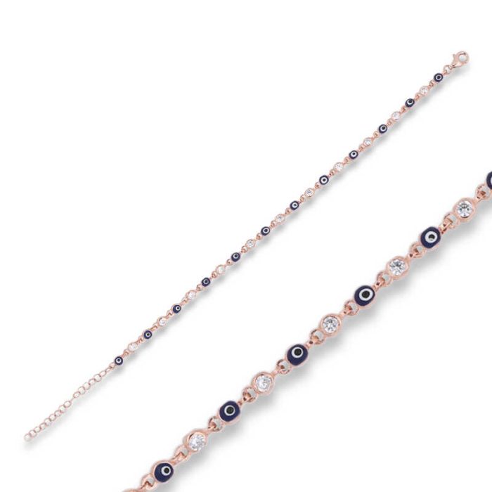 Silbernes Rosen-Armband mit bösen Blicken. Seit vielen Jahren verwenden Menschen Perlen für böse Blicke, um sich vor bösen Blicken zu schützen. Perlen mit bösen Blicken sind eine Vorsichtsmaßnahme, um zu verhindern, dass schlechtes Aussehen einen negativen Einfluss auf Menschen hat. Aus diesem Grund tragen Menschen Perlen mit bösen Blicken, um ihre Lieben zu schützen. Dieses Perlenarmband mit bösem Blick spiegelt Eleganz und Eleganz wider. Dieses Modell, das zu jeder Zeit beliebt ist und keine Kompromisse in seiner Eleganz eingeht; Sie können es als Geburtstagsgeschenk, Valentinstagsgeschenk oder als Geschenk für Mütter zu besonderen Anlässen wählen. Das silberne Evil Eye-Damenarmband besteht aus 925er Sterlingsilber. Rose auf Silber plattiert. Rosévergoldete Damenarmbänder aus Silber behalten lange ihren Glanz und ihre Oxidation wird verzögert. Die Steine darauf sind aus Zirkon. Wie alle silbernen Damenarmbänder wird auch dieses silberne Damenarmbandmodell mit Evil-Eye-Perlen vollständig von Hand gefertigt. Aufgrund von Silber und Edelsteinen kann es zu einer Abweichung von ± 10 % vom angegebenen durchschnittlichen Produktgewicht kommen. Breite: 0,40 cm Länge: 0,40 cm Durchschn. Gewicht: 4,30 gr. Kettenlänge: 19,00 cm