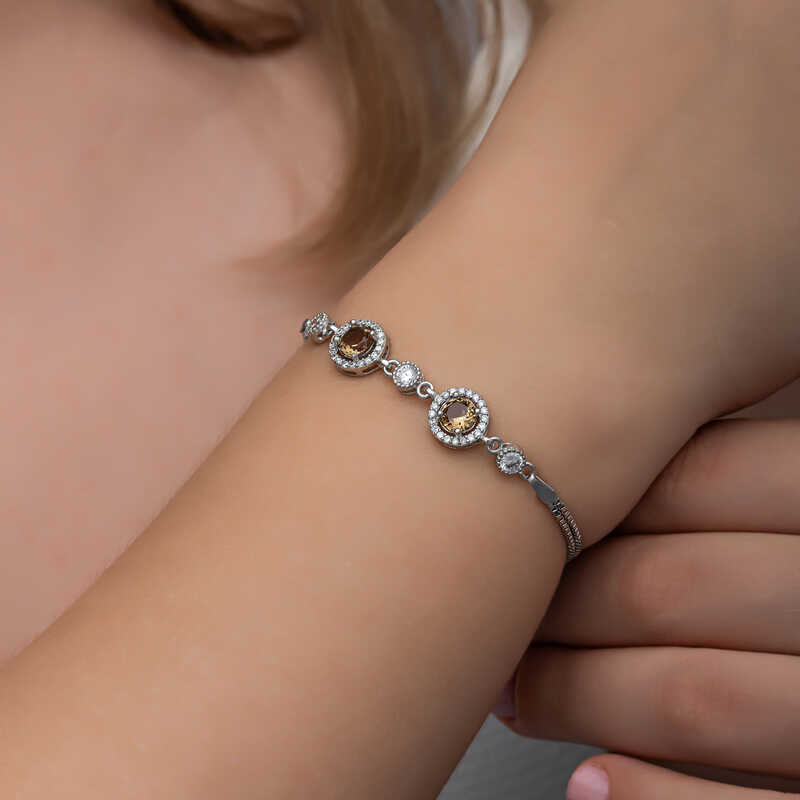 Damenarmband mit rundem Zultanit-Stein aus Silber Zu den Silberprodukten gehören Armbandmodelle, die jeden Geschmack ansprechen… Für diejenigen, die Armbänder im traditionellen Stil lieben, werden in der Kollektion auch Modelle mit einfacheren und authentischeren Motiven für Ihren Geschmack angeboten. Für alle, die auffälligen Schmuck bevorzugen, sind Modelle aus bunten Steinen wie Opal, Türkis, Mystic Topas und Zultanit dabei. Silberne Armbanddesigns verleihen schlichten und unifarbenen Outfits eine angenehme Atmosphäre. Durch die Untersuchung der Armbandmodelle, die Ihnen die elegantesten Möglichkeiten bieten, Ihren Stil zu betonen und widerzuspiegeln, können Sie Armbandmodelle finden, die Sie zu jeder Tageszeit tragen können. Das silberne Zultanit-Stein-Damenarmband besteht aus 925er Sterlingsilber. Dieses Armband ist rhodiniert. Rhodinierte Produkte behalten lange ihren Glanz. Die Steine darauf sind Zirkon und Zultanit. Wie alle silbernen Damenarmbandmodelle wird auch das silberne Zultanitstein-Damenarmbandmodell in Handarbeit hergestellt. Die Länge des Armbandes beträgt 22 cm. Aufgrund von Silber und Edelsteinen kann es zu einer Abweichung von ± 10 % im angegebenen durchschnittlichen Produktgewicht kommen. Durchmesser des quadratischen Zultanitsteins: 1,00 cm Kettenlänge: 22 cm Durchschn. Gewicht: 5,20 gr.