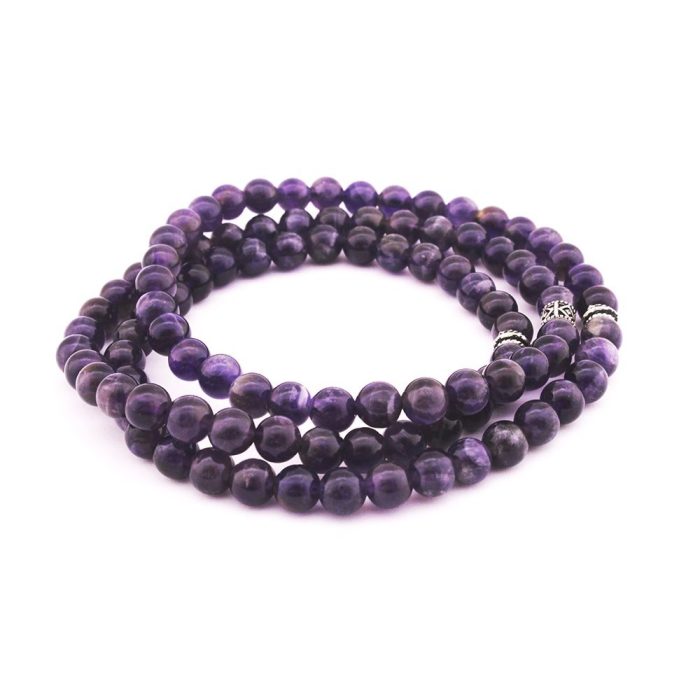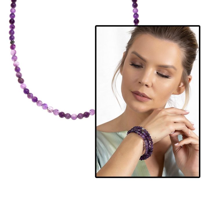 Sowohl Armband als auch Halskette und Gebetskette, 99-teiliger lila Amethyst-Natursteinschmuck