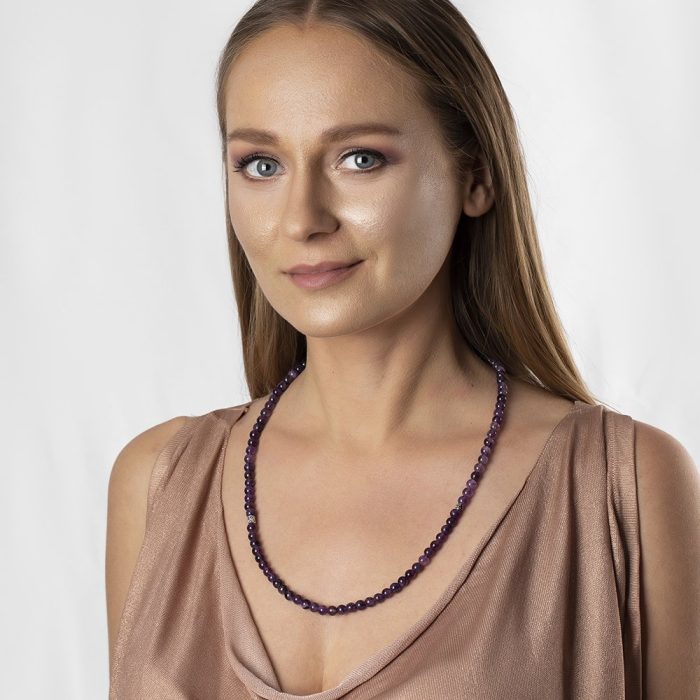 Hauptmaterial, das bei der Herstellung des Produkts verwendet wird: Amethyststein. Kornform: Kugelschliff. Kornlänge: 6 mm. Kornbreite: 6 mm. Länge: 60 cm (an Angelschnur aufgereiht, mit Dehnbarkeit). Produktverpackung: Ihr Produkt wird mit einer Schutzhülle versendet Box mit Logo. Spezielle Optionen für Geschenkboxen finden Sie in der Kategorie „Geschenkbox“ im Menü. Produkt- oder Natursteinbeschreibung: Er wird seit Jahrhunderten in vielen Zivilisationen mit Bewunderung verwendet. Es ist bekannt, dass es in Asien und Ägypten als Siegel verwendet wird. Amethyst, der zur Familie der Quarze gehört, hat violette oder violettblaue Farben. Es ist auch der stärkste Stein in Bezug auf die Heilung. Da es eine negative elektrische Ladung trägt, erhöht es die Gehirnleistung, indem es überschüssige Elektrizität im Körper sammelt. Es reicht aus, irgendwo in Ihrer Umgebung zu stehen, um negative Energien zu zerstören und in positive Energie umzuwandeln. Es ist gut gegen Schlaflosigkeit. Es wirkt auch gegen Hautkrankheiten, Migräne, Allergien und Augenkrankheiten. Da es sich um einen Stein handelt, den Sie immer bei sich tragen können, versorgt er Sie stets mit Wohltat und Energie. Er verleiht den unter Spannung stehenden Körperstellen ein Gefühl der Wärme und baut Verspannungen ab. Es gibt Energie. Es gibt der Person, die es trägt, Kraft und Freude. Es erhöht die körperliche Vitalität und beseitigt Faulheit. Als Ring verwendet, steigert er das Selbstbewusstsein. Da es lebendig und energisch ist, hilft es Ihnen, die positiven Aspekte von Ereignissen zu erkennen, wenn Sie sich schlecht fühlen. Es schützt Kinder, die den Achatstein in ihren Taschen tragen, vor negativen Emotionen.