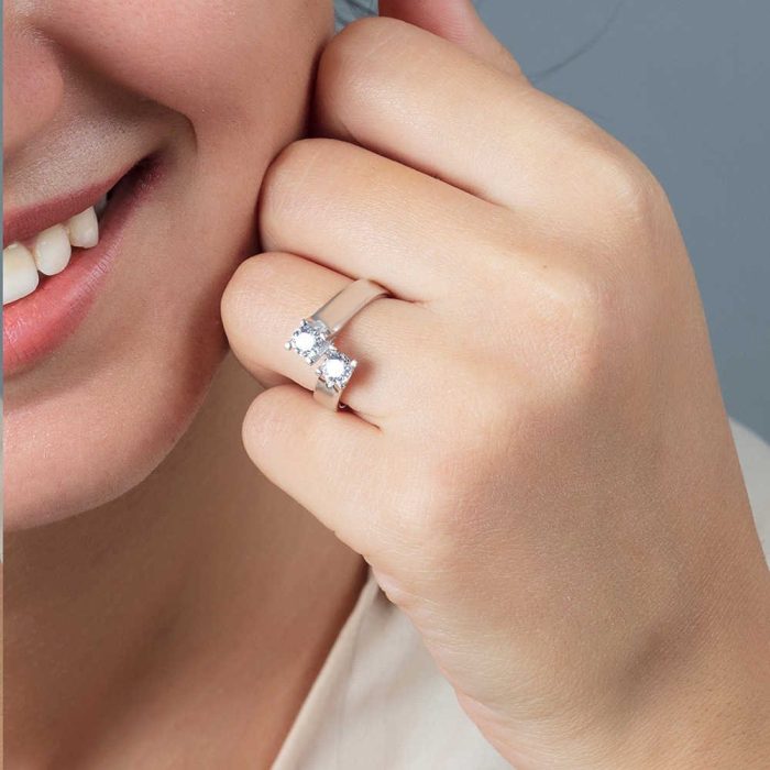 Home STARLIGHT DIAMOND Ring Starlight Diamond Diamantmontierter asymmetrischer Damen-Doppelsteinring aus 925er Sterlingsilber