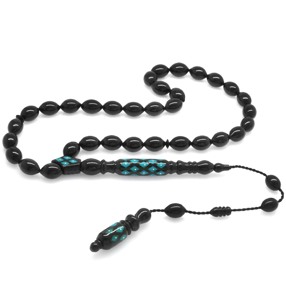 Produktionsmaterial: Erzurum-Oltu-Stein. Hauptfarbe: Schwarz. Kornform: Gerstenschnitt. Korngröße: 8 mm x 11 mm. Gesamtlänge: 40 cm. Gewicht: 22 g. ± Aufdruckmaterial: Erzurum-Oltu-Stein. Quastenmaterial: Erzurum-Oltu-Stein. Produktbox. Ihr Produkt wird mit einer Schutzbox versendet mit Logo. Für spezielle Geschenkbox-Optionen können Sie sich unsere Kategorie „Geschenkbox“ im Menü ansehen. Produkt- oder Natursteinbeschreibung Oltu-Stein ist ein Halbedelstein, der im Allgemeinen im Oltu-Bezirk von Erzurum abgebaut wird. Darüber hinaus zeichnet sich der in Georgien abgebaute Oltu-Stein durch eine einfache Verarbeitung aus. Aus diesem Grund wird es in verschiedenen Schmuckstücken und Accessoires verwendet. Gebetsperlen sind eines dieser Accessoires. Der Ruhm der Gebetsperlen aus Oltu-Stein ist nicht nur in der Türkei, sondern auf der ganzen Welt weit verbreitet. Es ist bekannt, dass der Oltu-Stein, von dem angenommen wird, dass er bei Menschen, die Rosenkränze verwenden, Elektrizität aus dem Körper entzieht, auch Stress reduziert.