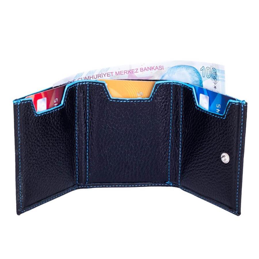 Zwölf Echtleder-Kartenhalter-Geldbörse mit Patchwork-Schwarz-Blau. Detaillierte Produktmerkmale: 100 % echtes Leder. Abmessungen: 7cm*9cm. Rohlingstärke: 2,5 cm. Es gibt 6 Kartenfächer und 1 Papiergeldfach. Es wird von unserem erfahrenen Team sorgfältig hergestellt.