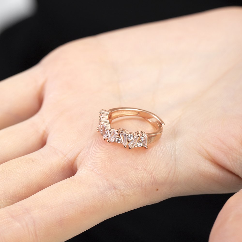 Weißer Zirkon-Stein, asymmetrisches Design, Rosenfarbe, freie Größe, 925er-Sterlingsilber-Damenring