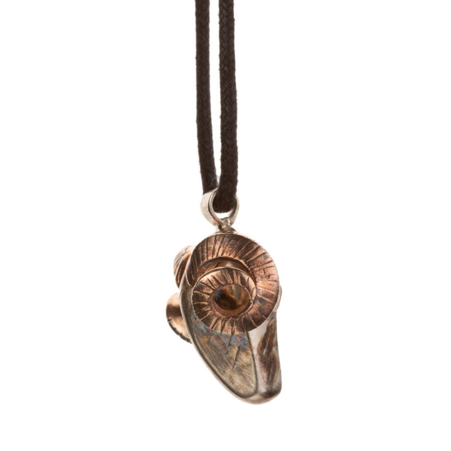 Merkmale der Widderkopf-Herrenhalskette aus Bronze: Hergestellt aus Bronze. Der Versand erfolgt mit einem 50 cm langen Echtlederseil.