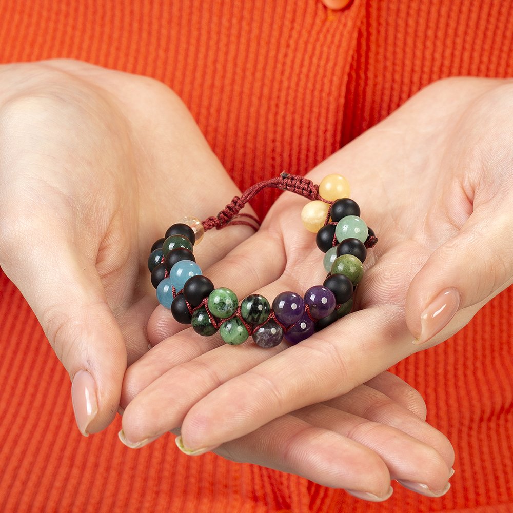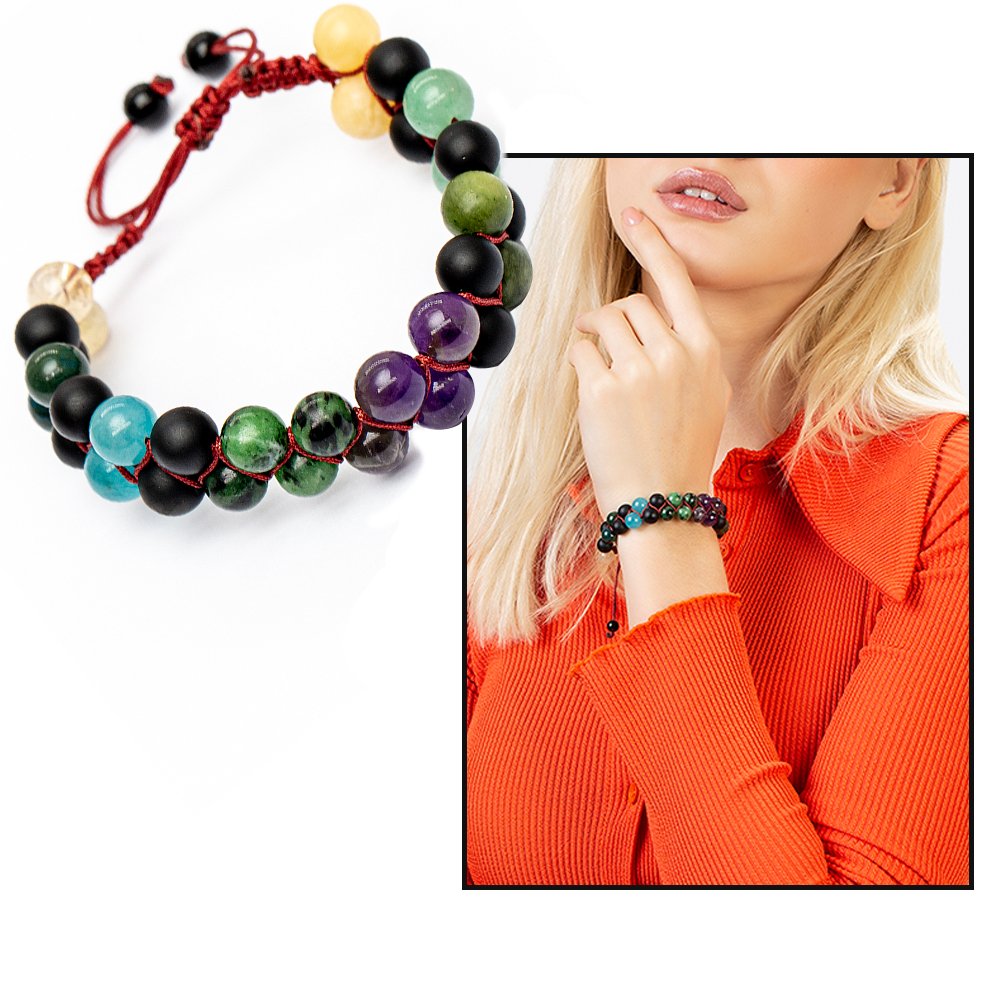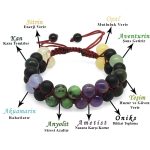 Hergestellt: Naturstein. Verwendete Steine: Amethyst-Anyolit-Aquamarin-Aventurin-Blut-Citrin-Opal-Jade. Farbe: Mischung. Gewicht: 25,60 g. Länge: Makramee Vorbereitungszeit: 1 Werktag Produktbox Ihr Produkt wird mit einer Schutzbox mit Ihrem Logo versendet. Spezielle Optionen für Geschenkboxen finden Sie in der Kategorie „Geschenkbox“ im Menü. Beschreibung des Natursteins Amethyst: Er wird seit Jahrhunderten in vielen Zivilisationen mit Bewunderung verwendet. Es ist auch der stärkste Stein in Bezug auf die Heilung. Da es eine negative elektrische Ladung trägt, erhöht es die Gehirnleistung, indem es überschüssige Elektrizität im Körper sammelt. Es reicht aus, irgendwo in Ihrer Umgebung zu stehen, um negative Energien zu zerstören und in positive Energie umzuwandeln. Es ist gut gegen Schlaflosigkeit. Da es sich um einen Stein handelt, den Sie immer bei sich tragen können, versorgt er Sie stets mit Nutzen und Energie. Es gibt Energie. Anyolith: Es reguliert den Körper, stärkt ihn und gibt Energie. Es lindert Faulheit und Lethargie des Menschen und wirkt gegen chronische Müdigkeit. Beruhigt, reduziert Stress und Reizbarkeit. Es aktiviert und stärkt die Nebennieren und Lymphknoten. Es gleicht die Blutgerinnung aus. Es reinigt und erneuert das Blut. Es ist gut bei Augenkrankheiten und stärkt die Augen. Aquamarin: Es ist einer der wertvollsten Steine. Die wichtigsten Merkmale, die seinen Wert steigern, sind der Grad der Transparenz, die Dunkelheit seiner Farbe und die Sauberkeit des Innenraums. Es steigert Ihr Selbstvertrauen. Es ist gut bei Halsschmerzen, Bronchitis, Atemwegserkrankungen und Schilddrüsenerkrankungen. Es ist wirksam bei der Behandlung psychischer Erkrankungen. Es stärkt die Intuition. Der Aquamarinstein, auch Stein des Überflusses und des Glücks genannt, ist auch der Feind von Stress und Anspannung. Wenn Sie eine extrem wütende, angespannte und gereizte Person sind, wird es Ihnen helfen, in einen friedvolleren Zustand zu gelangen. Aventurin: Dieser Stein, der metallisches Funkeln ausstrahlt, hat eine körnige Struktur. Er ist als Stein des Glücks bekannt. Es wirkt emotional ausgleichend und wirkt auch gegen Depressionen. Sie können es nutzen, um sich glücklich zu fühlen. Es ist besonders vorteilhaft für die Herzgesundheit. Wenn es in der Nähe des Herzens platziert wird, schützt es Sie vor der Negativität anderer Menschen. Es ermöglicht Ihnen, offenherzig zu sein. Er ist auch als Stein der Träumer bekannt. Es ist gut für Menschen, die sich in Denkmustern befinden, die sie einschränken oder behindern. Es ist auch der am besten geeignete Stein für junge Leute, die ihr eigenes Ding machen. Blut: Blutstein ist ein ausgezeichneter Blutreiniger und ein kraftvoller Heilstein. Es verbessert die Intuition und steigert die Kreativität. Es hilft, Auswirkungen wie geopathischen oder elektromagnetischen Stress zu überwinden, indem es negative Umweltenergie anzieht. Es regt zum Träumen an und ist ein starkes Stärkungsmittel. Es macht Mut und lehrt Sie, gefährliche Situationen zu vermeiden. Es beruhigt und belebt den Geist, lindert Verwirrung, insbesondere aufgrund von Stress, und verbessert die Entscheidungsfindung. Hilft bei der Anpassung an ungewöhnliche Bedingungen. Es reduziert Reizbarkeit, Aggression und Ungeduld. Citrin: Seine Farbe erhält es durch das darin enthaltene seltene Eisen. Er wird auch als Kaufmannsstein bezeichnet. Der Grund dafür ist, dass Menschen, die in der Vergangenheit Handel trieben, diesen Stein in ihren Tresoren aufbewahrten und glaubten, er sei fruchtbar. Es wird angenommen, dass Citrinstein Erfolg bringt. Es wird verwendet, um unerwünschte Energien in der Umgebung zu blockieren. Es erhöht die geistige Klarheit und das Selbstvertrauen. Es gibt Selbstvertrauen in Situationen von Selbstzweifeln, Zweifeln und Nervosität. Es schenkt der Person, die es trägt, Gefühle der Freude und des Glücks. Es beseitigt Akne und schützt vor Hautkrankheiten. Es hilft, Süchte loszuwerden. Es schafft auch Einheit und Solidarität unter den Familienmitgliedern. Opal: Es wird angenommen, dass der Opalstein seinem Besitzer großes Glück bringt. Es ist bekannt, dass Menschen, die diesen Stein tragen, sich im täglichen Leben glücklicher fühlen. Opalstein hat eine frische und schöne Energie. Bei dieser Energie geht es nicht nur um die Visualität des Steins. Es ist bekannt, dass Menschen, die diesen Stein tragen, sich motiviert und glücklich fühlen. Viele Experten empfehlen diesen Stein, um Menschen vor Stress zu schützen. Es sollte auch gesagt werden, dass Menschen, die Opalsteine tragen oder in ihren Häusern aufbewahren, dem Stress des Alltags fernbleiben. Jade: Es hat eine friedliche und beruhigende Wirkung, die es Ihnen ermöglicht, Ihre Sorgen loszuwerden. Es bringt Klarheit in die Gedanken und stärkt die geistige Aktivität. Es fördert das emotionale Gleichgewicht und hat eine schützende Wirkung gegen Extreme. Es ist ein Antioxidans. Seine positive Wirkung wurde bei der Entfernung von Giftstoffen und der Reinigung des Blutes beobachtet. Es erleichtert die Konzentration.
