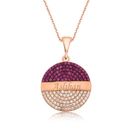 Personalisierte Namenskette mit Tulpenmuster aus Silber mit Rose für Damen