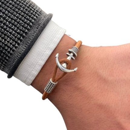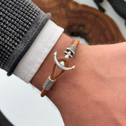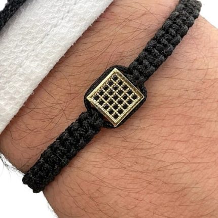 Silberner wirbelnder Derwisch Vav gemustertes Makramee-Herrenarmband