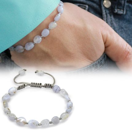 Geflochtenes Makramee-Herrenarmband aus natürlichem Chalcedon-Naturstein