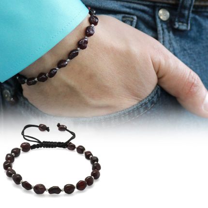 Makramee-Armband aus geflochtenem Naturschliff-Granat-Naturstein für Herren
