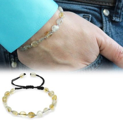 Makramee geflochtenes Citrin-Naturstein-Herrenarmband im Naturschliff