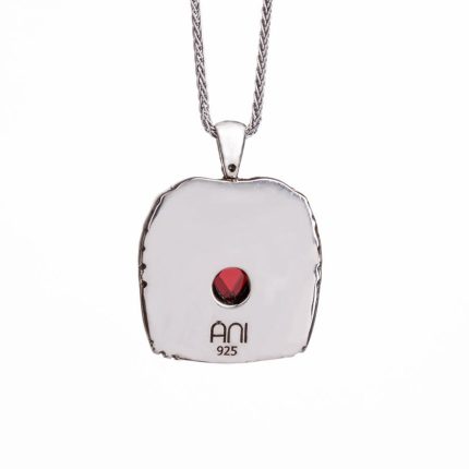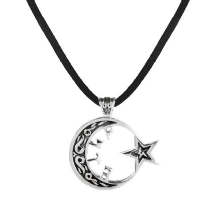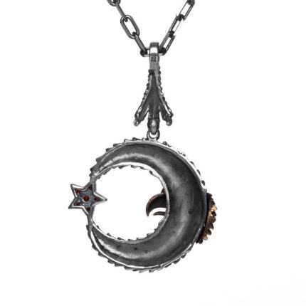 Silberne Herrenhalskette mit rotem Stein und Halbmond-Star-Hawk-Motiv