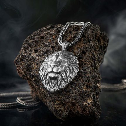 Geprägte Herrenhalskette aus 925er Sterlingsilber mit Löwenkopfmotiv