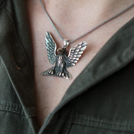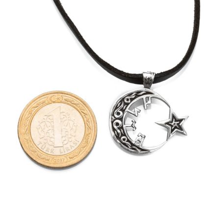Silbergrauer Wolf und gokturkische türkisch geschriebene Herrenhalskette